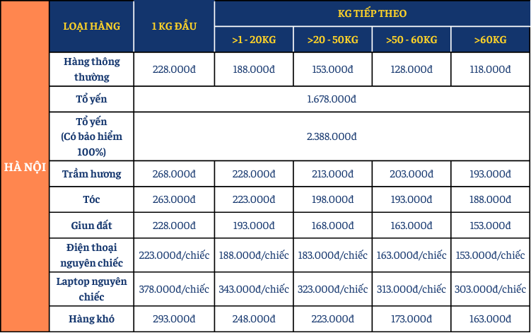 BẢNG GIÁ GỬI HÀNG ĐI TRUNG QUỐC