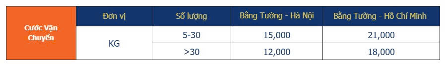 Nếu quý khách cần tối ưu cước vận chuyển hơn, có thể yêu cầu sử dụng tàu chậm 72h (HN -HCM). Khi đó: CƯỚC (Bằng Tường. – HCM) = Cước (Bằng Tường – Hà Nội) + (2.000 đ/kg và 500.000 đ/m3)