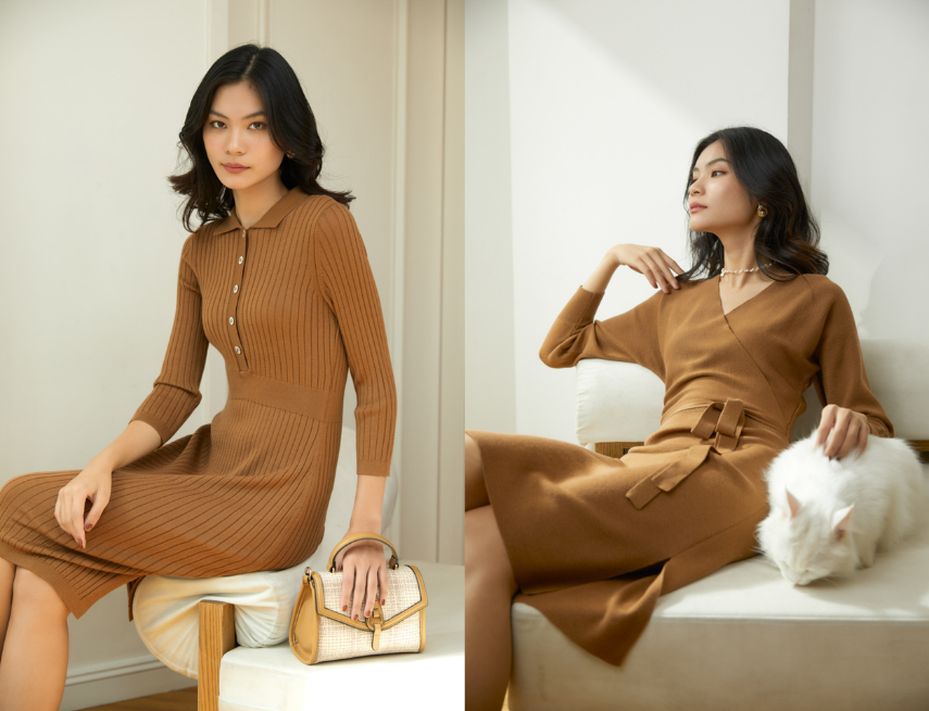 Ưu điểm: Vừa sang trọng vừa giữ ấm, form váy ôm nhẹ giúp tôn dáng.