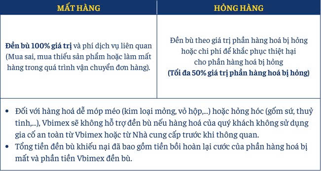 Nếu Quý Khách muốn hưởng quyền lợi đền bù 100% trong trường hợp HỎNG HÀNG, Quý Khách có thể sử dụng thêm Dịch vụ Bảo hiểm hỏng hàng dưới đây.