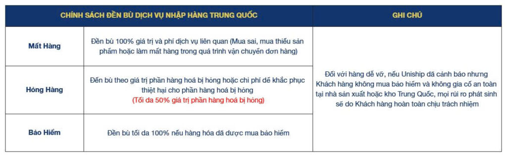 Chính sách đền bù của Uniship Logistics khi khách hàng sử dụng dịch vụ “nhập hàng Trung Quốc“.