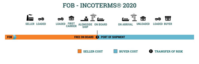 FOB là một trong những điều kiện lâu đời và quen thuộc nhất trong vận tải biển. Với FOB, người bán hoàn tất trách nhiệm khi đưa hàng hóa lên tàu tại cảng bốc hàng.