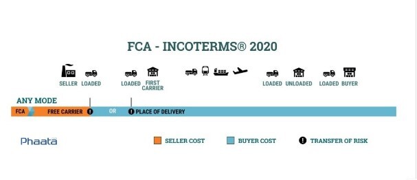 - FCA: rủi ro chuyển giao tại địa điểm người bán bàn giao hàng cho đơn vị vận tải do người mua chỉ định (có thể là kho, cảng, sân bay…).