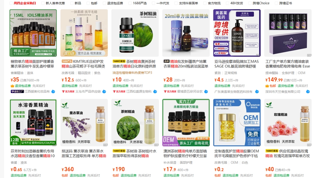 Hiện nay có nhiều cách để nhập tinh dầu Trung Quốc với giá sỉ, tùy vào nhu cầu và vốn mà bạn có thể lựa chọn hình thức phù hợp. Phổ biến nhất là nhập qua các sàn thương mại điện tử như 1688, Taobao, Tmall hay Alibaba. Đây là kênh được nhiều người ưa chuộng bởi giá rẻ, mẫu mã đa dạng và không cần tốn công sang tận nơi.